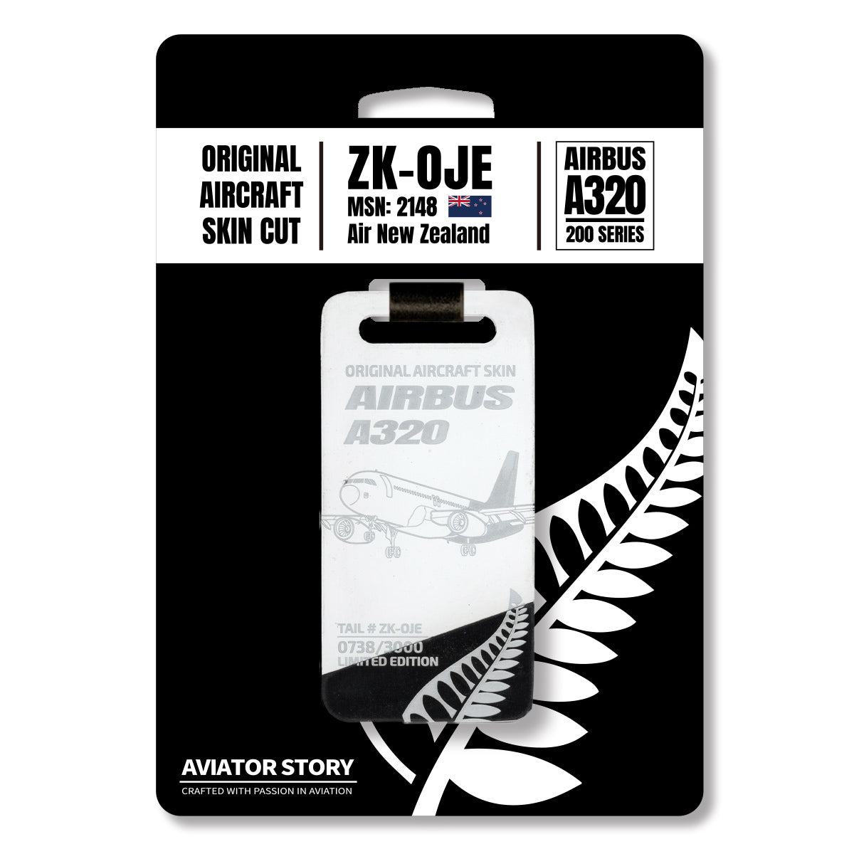 Registered as ZK-OJE, this Airbus A320 (MSN:2148) was delivered in January 2004 and operated by Air New Zealand for 15 years before being returned to its lessor in November 2019. The aircraft was then parted out at Marana Pinal Airpark in the United States, and some of its original skin cuts were preserved and used to manufacture a limited number of original aircraft skin tags.