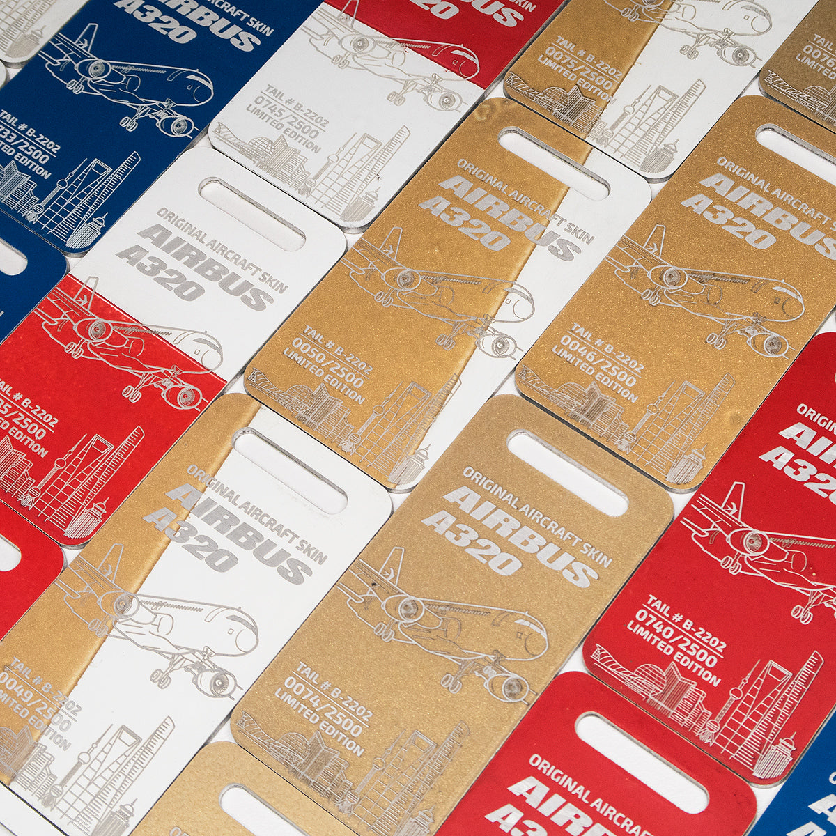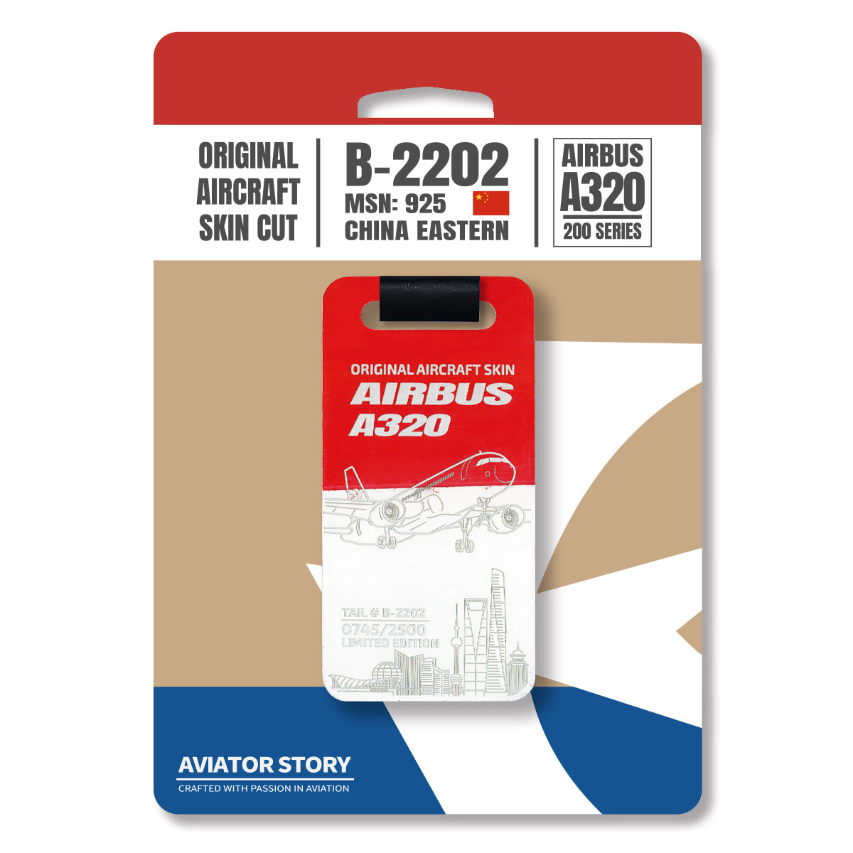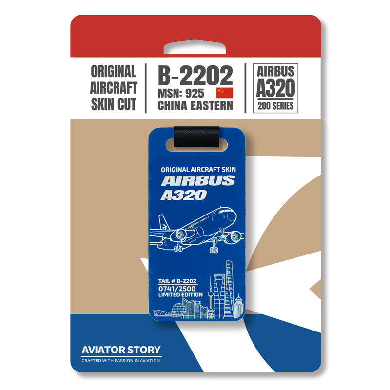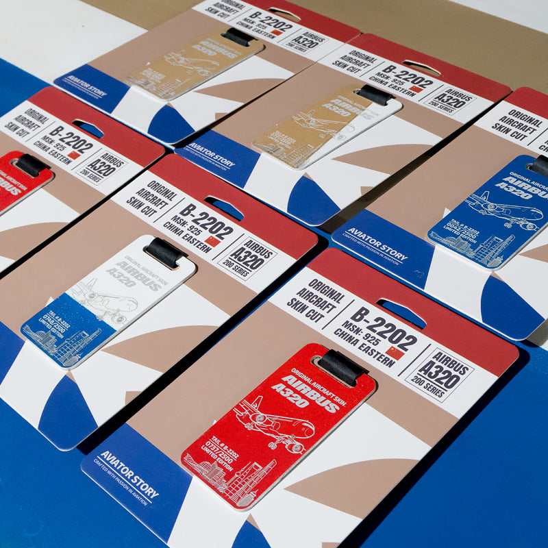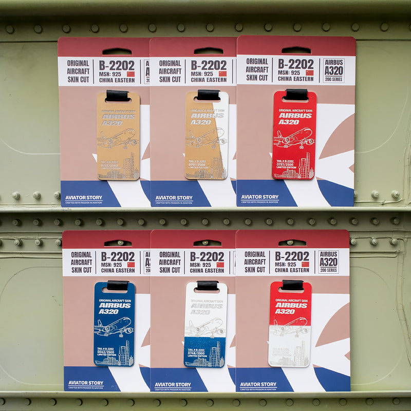 This Airbus A320 original plane tag was cut from the fuselage of Airbus A320 with registration number B-2022. Specifically, the section was cut from the cheatline of China Eastern Airlines livery which is below the passenger windows. We were able to preserve this section of fuselage and manufacture limited number of original aircraft skin tag that carries aviation history.