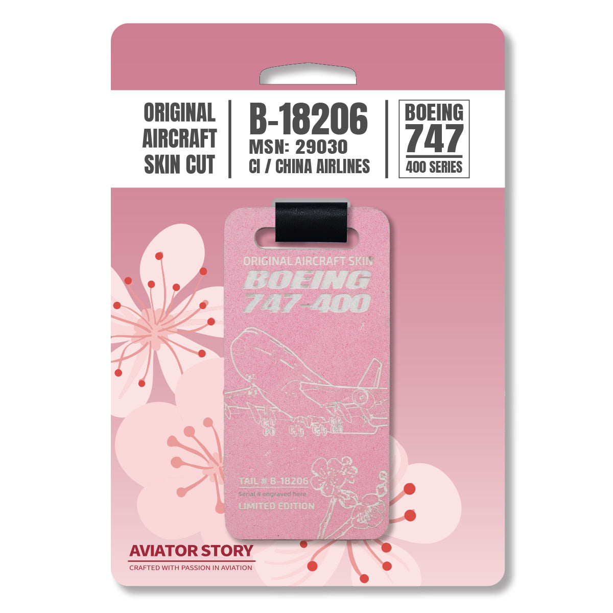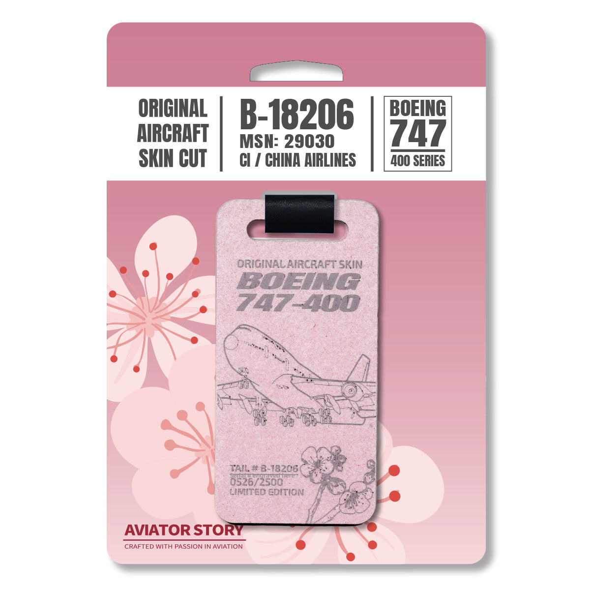 China Airlines said farwell to Boeing 747-400 “Queen of the Skies” passenger jet on Mar 20, 2021. The Boeing 747 aircraft was once the most important aircraft for the airline to connect United States and Europe with Taipei, airline's hub city. This Boeing 747-400 original aircraft skin tag was cut from an ex-China Airlines passenger plane B-18206 as a part of history of China Airlines and Boeing and the entire aviation history.