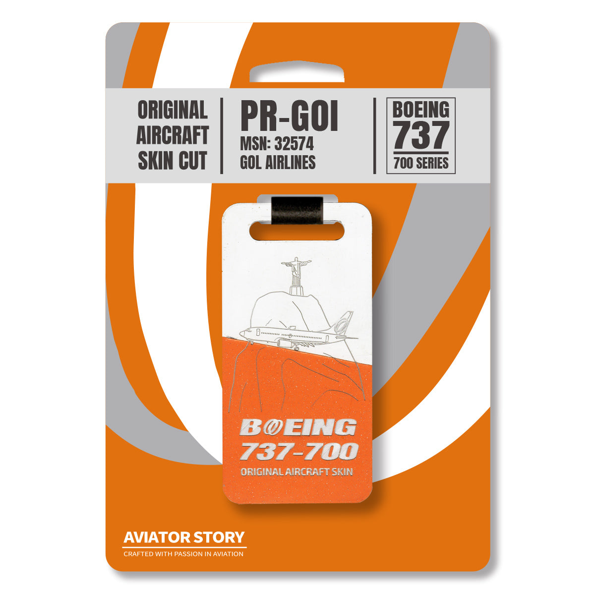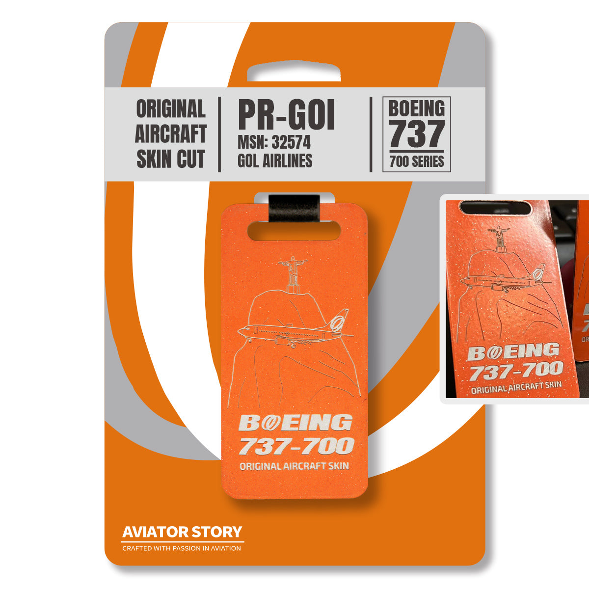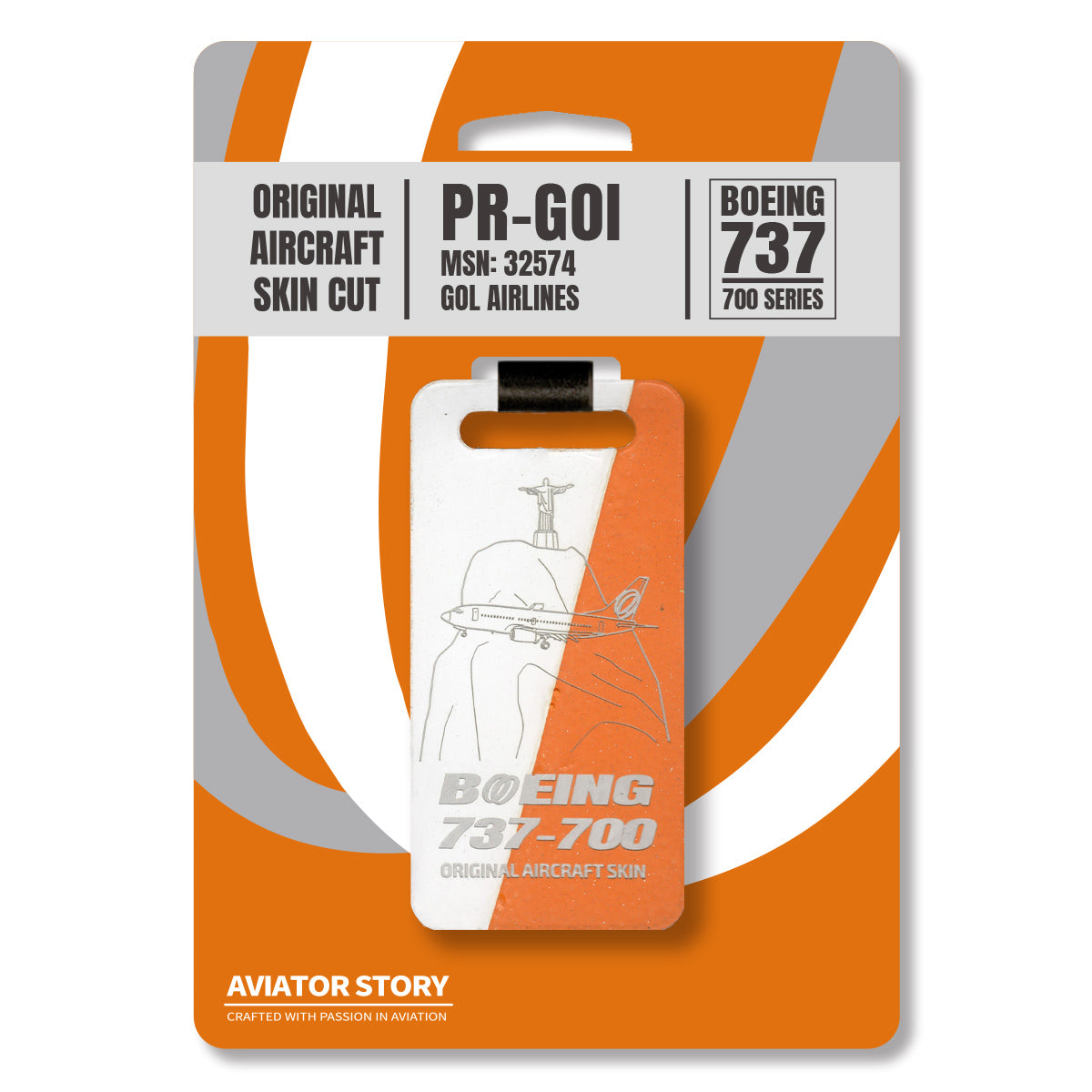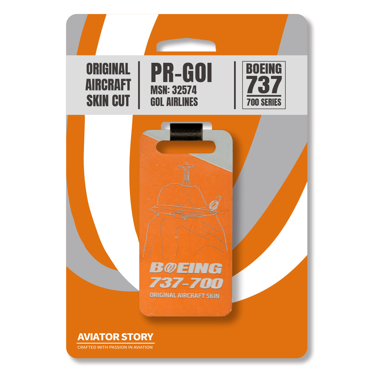 GOL Linhas Aereas Inteligentes, also known as Gol Airlines, is a leading low-cost airline in Brazil. This original aircraft skin tag was made from retired Gol Boeing 737 aircraft that carries the tail number PR-GOI.